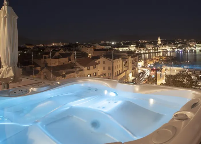 Ovaj apartman nudi mogućnosti samostalnog kuhanja u potpuno opremljenoj kuhinji s mikrovalnom pećnicom, hladnjakom i posuđem. Objekt je opremljen čajnicima i aparatima za kavu, pružajući gostima ugodan i ugodan boravak. Najbliža autobusna stanica apartmanu Luksuzni Penthouse Monriva površine 120 m² je Bakotićeva, koja je udaljena otprilike 10 minuta hoda. Uključenost jacuzzija osigurava ugodno iskustvo.